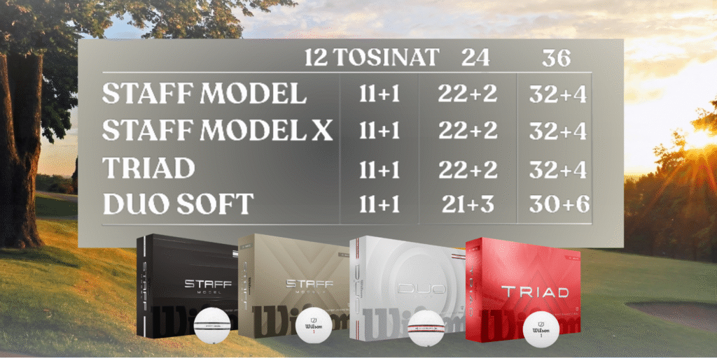 Wilson pakub Sulle üht turu laiahaardelisemat valikut golfitooteid, mida saad kohandada vastavalt oma brändi vajadustele. Valikus on kõik vajalik alates tipptasemel golfipallidest kuni kvaliteetsete rõivaste, kottide ja aksessuaarideni, mis ühendavad praktilisuse, vastupidavuse ja professionaalse stiili.